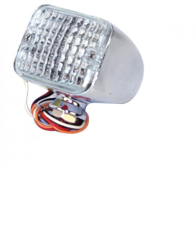 MINI LED TAIL LIGHT ASSEMBLY HAS CLEAR LENS AND SHOWS RED STOP AND TAIL LIGHT AND AMBER INDICATOR, EACH.